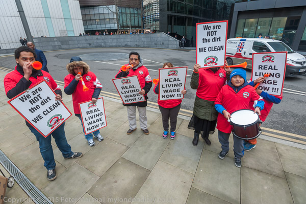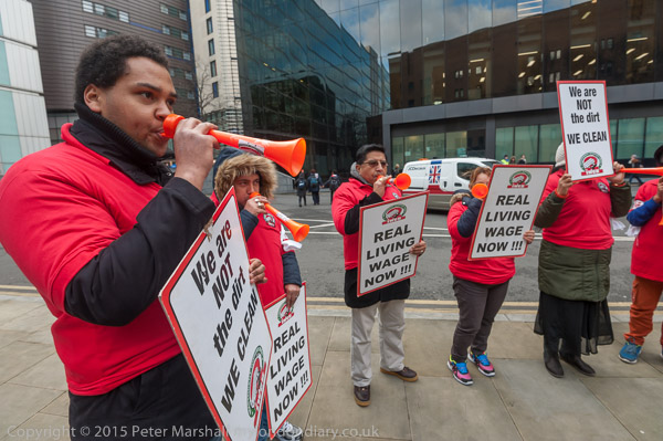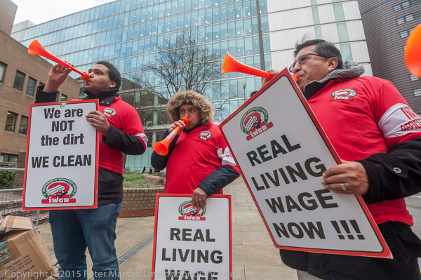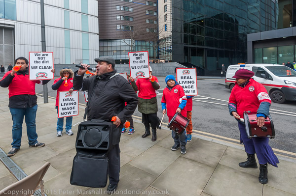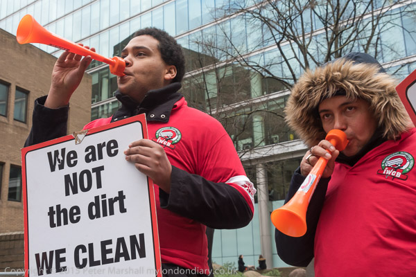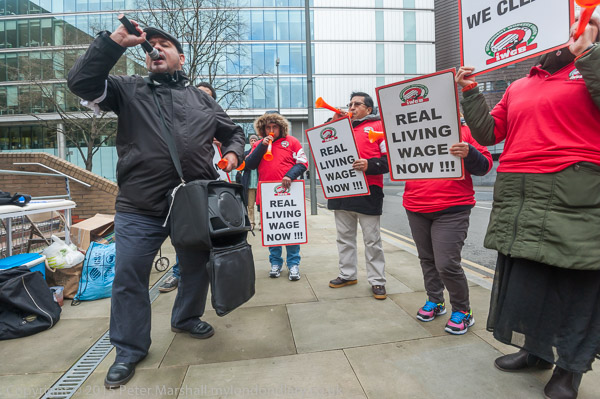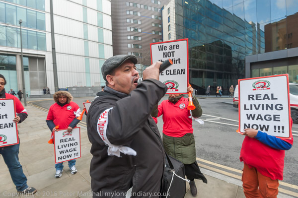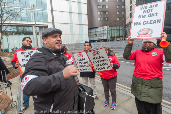 Alberto Durango, IWGB President lets everyone around know why the cleaners are protesting