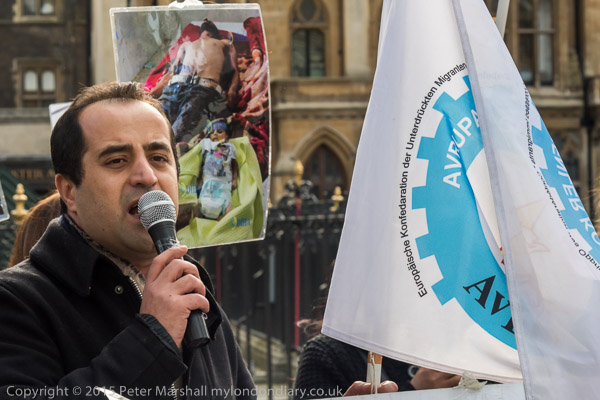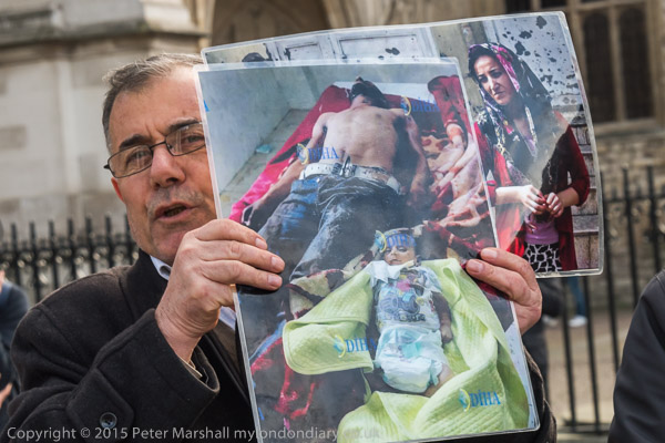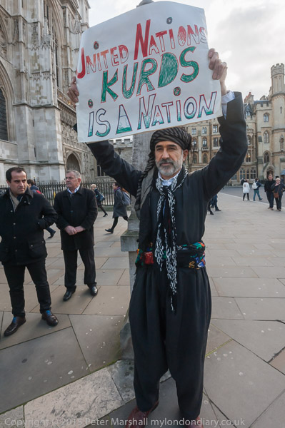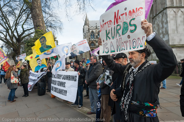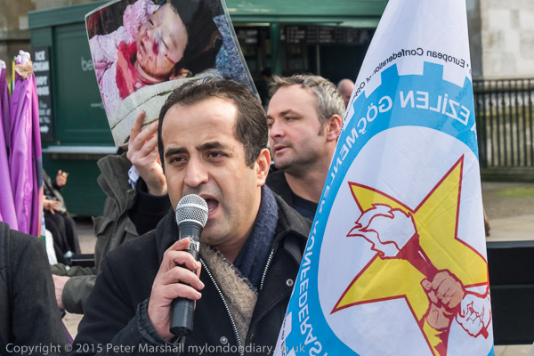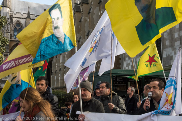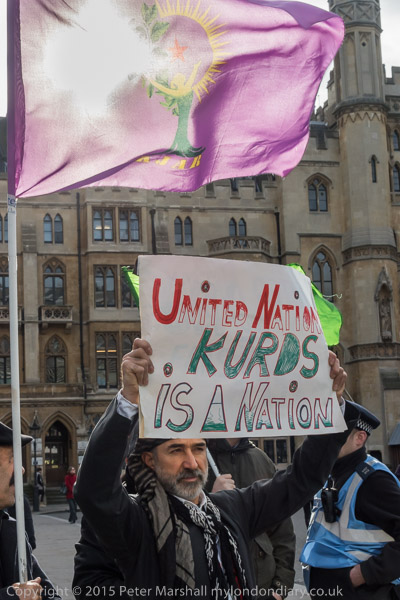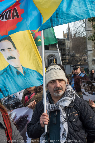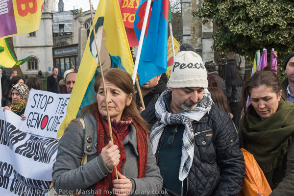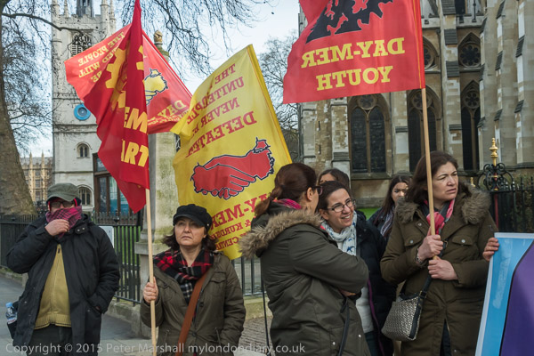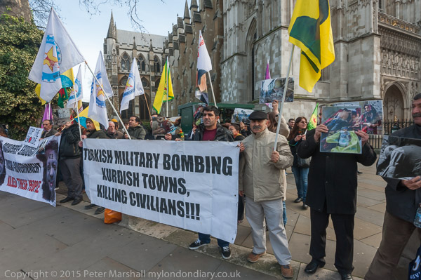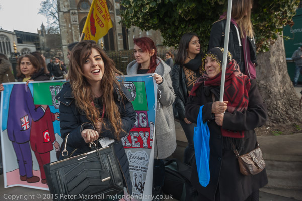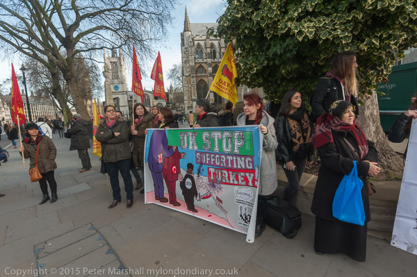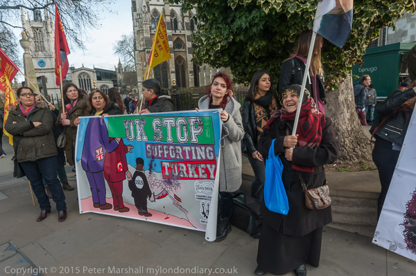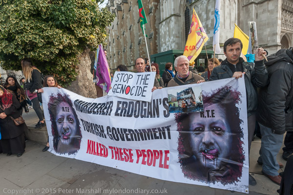 Day-mer flags and a banner 'UK Stop Supporting Turkey'