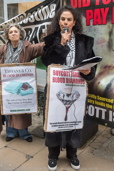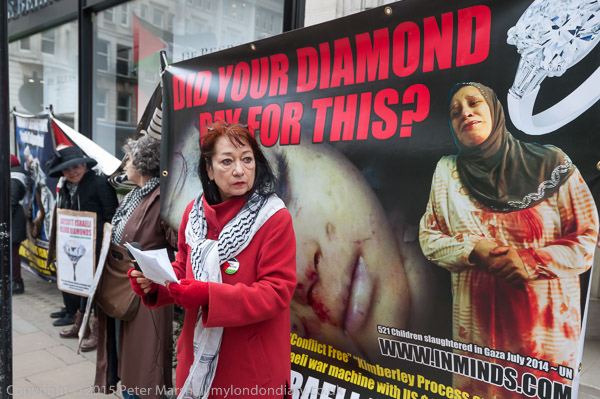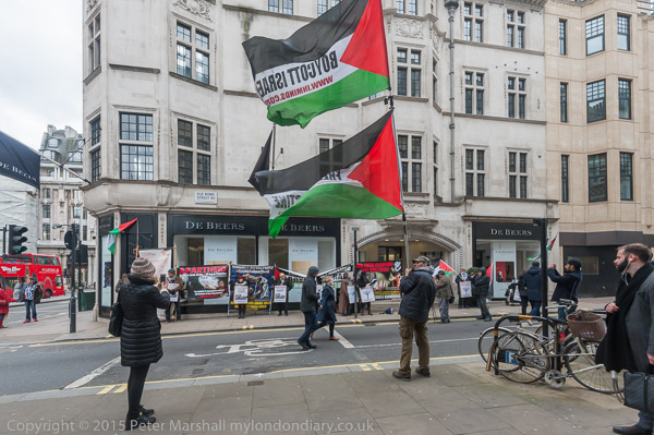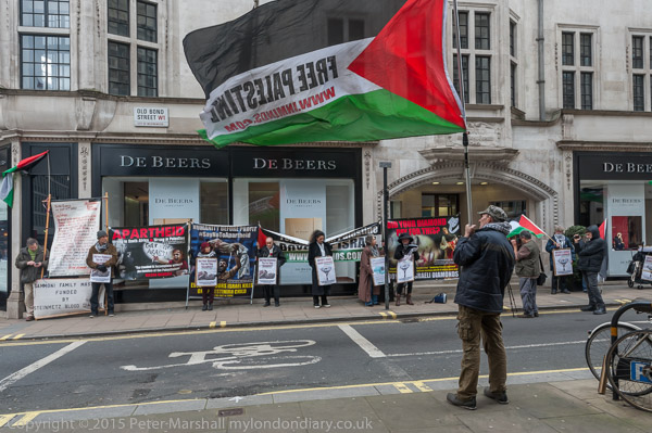 Apart from speeches there was some loud shouting of slogans against buying blood diamonds and some Palestinian music