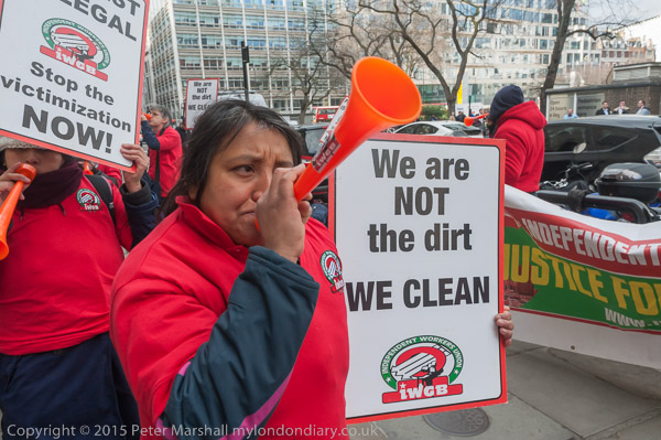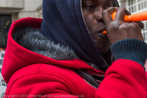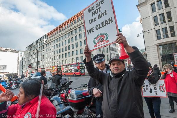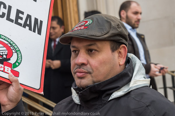 a police officer tries to talk with IWGB President Alberto Durango who ignores him