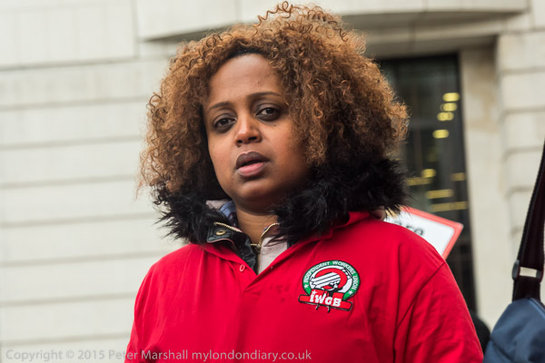 IWGB Union rep Hanna Abebe, sacked by Bloomberg. She had a miscarriage allegedly brought on by excessive workload.
