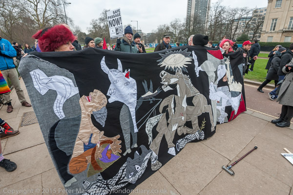 Refugee support groups in Brighton had brough a banner they made bases on Picasso's Spanish Civil War painting 'Guernica'