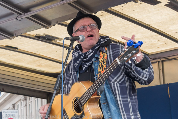 A singer on the stage was entertaining the front of the crowd, which stretched back along Park Lane