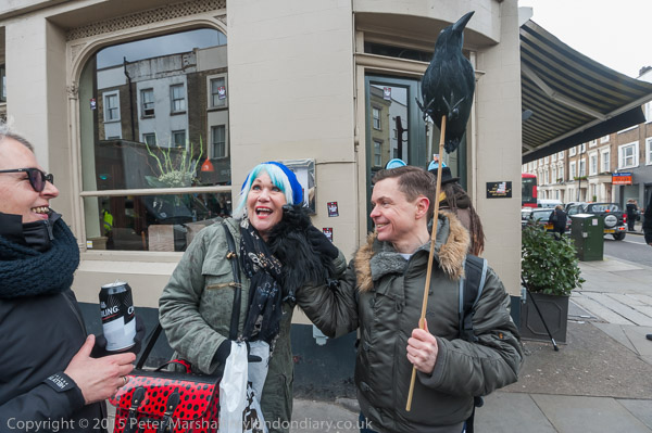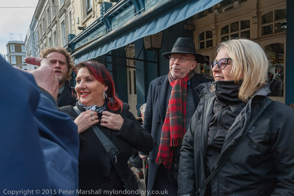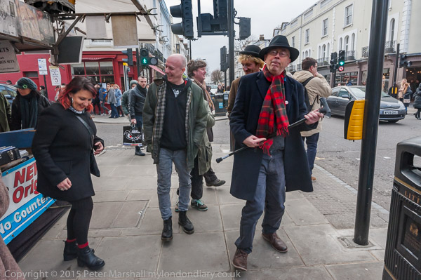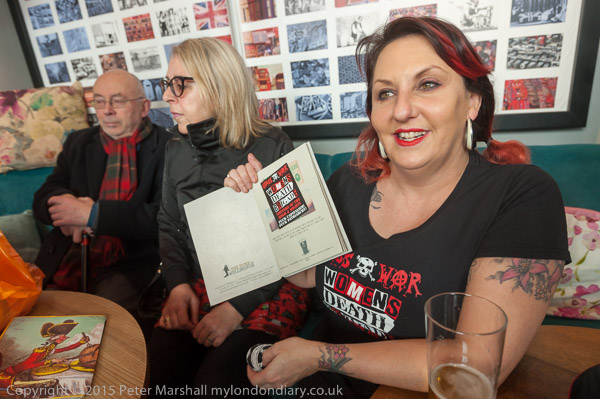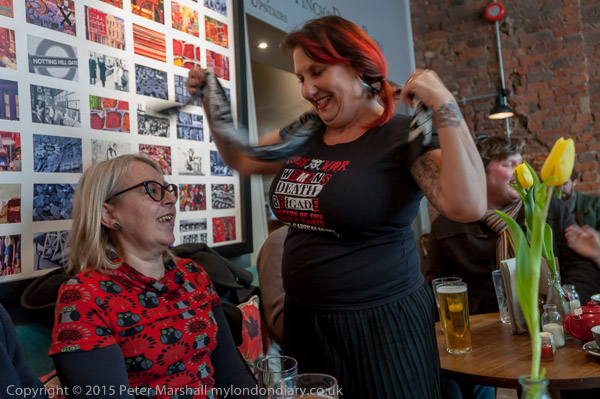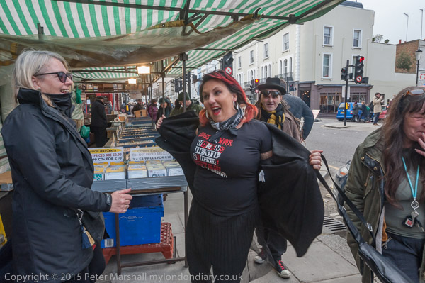 At the record stall; Ian Bone on air guitar, Lisa McKenzie dancing