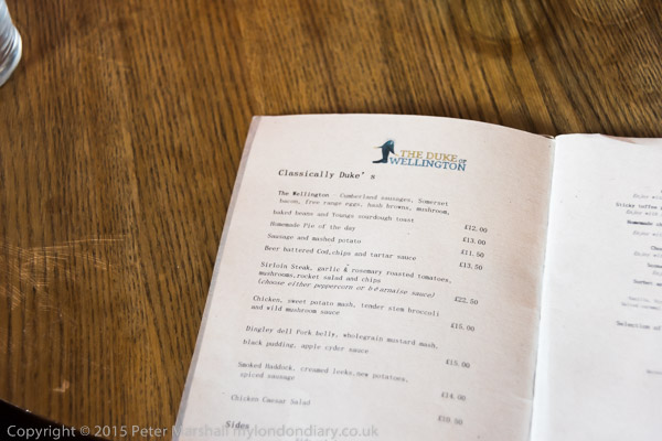 The menu looks as if baked beans on toast costs £12.00 - but it's a layout error. Fish& Chips is £13.50