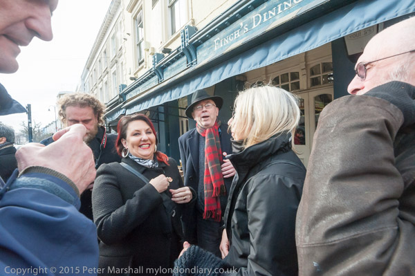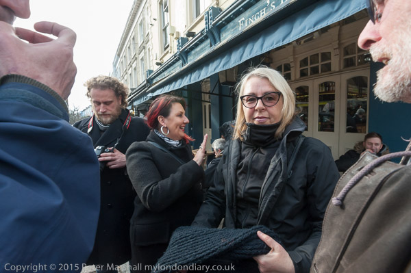 Lisa shows off her t-shirt as she goes into the Earl of Lonsdale