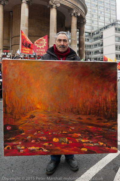 Kaya Mar holds his pictrue 'The Massacre of the Kurds'
