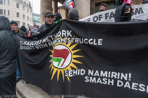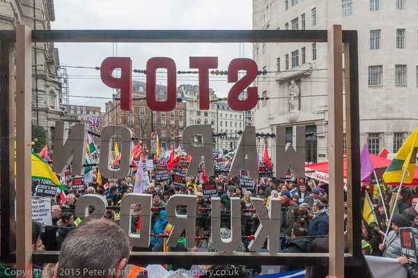 The marchers gathered in front of the BBC at Broadcasting House. The BBC failed to report the protest