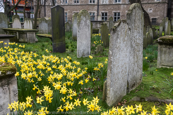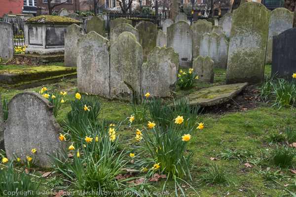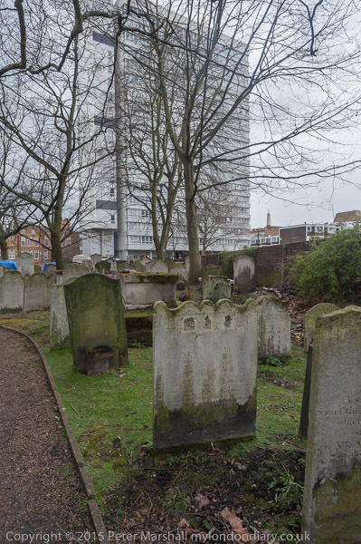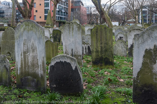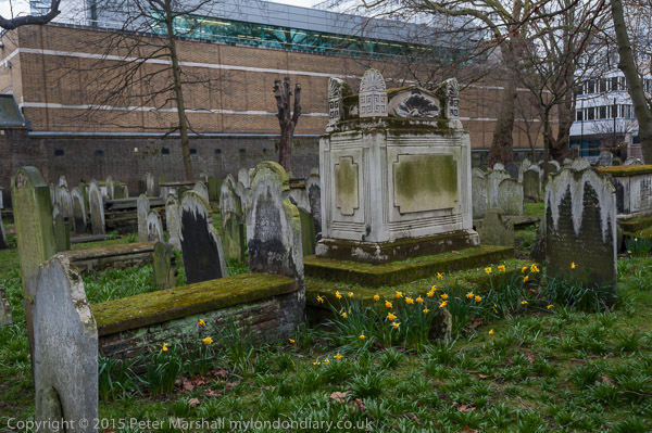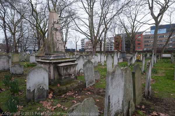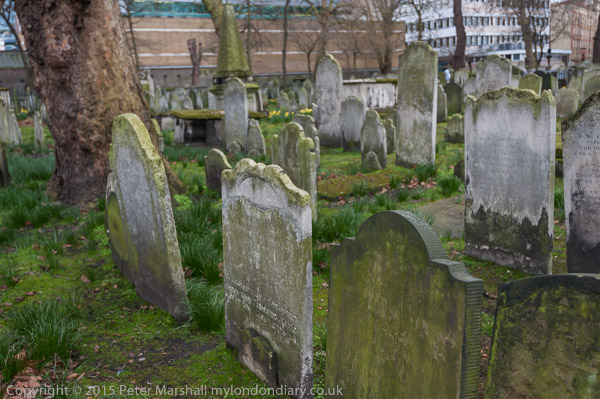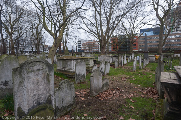 Most buildings close to Bunhill Fields are fairly low, giving it and its trees an open aspect