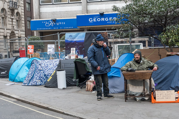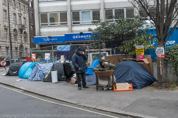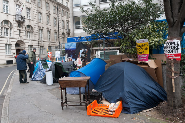 Close by the BBC, a row of tents