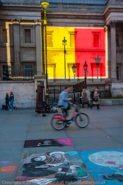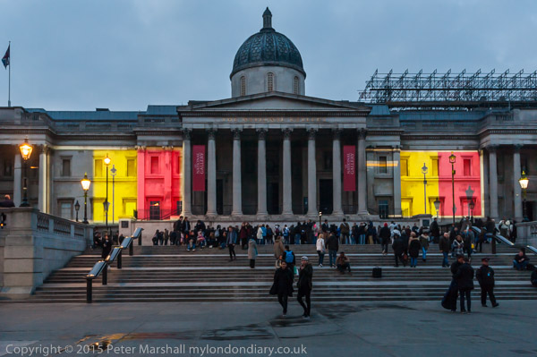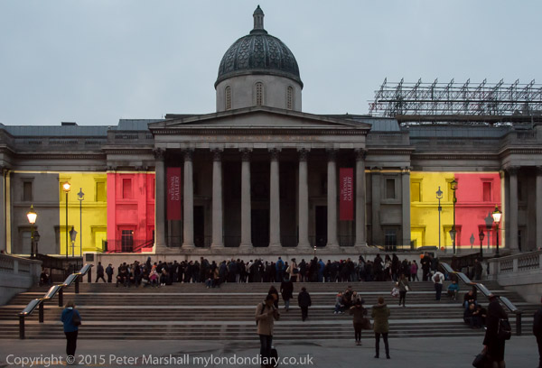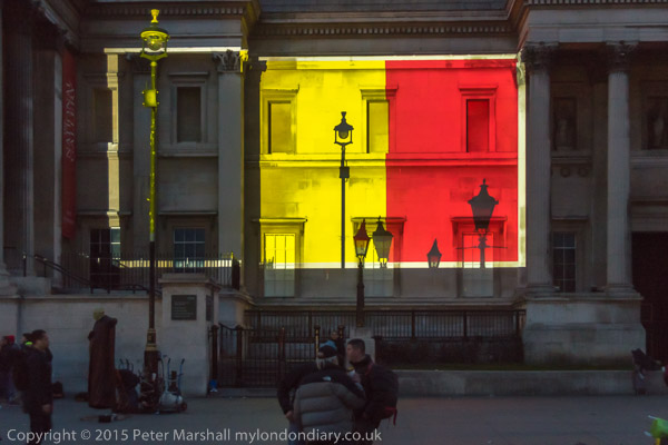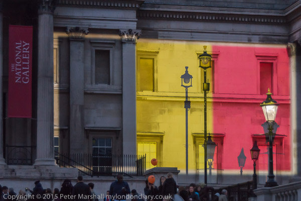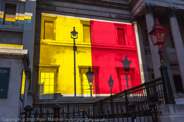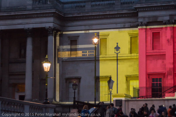 The National Theatre was lit up in yllow and red too, but didn'thave a good black