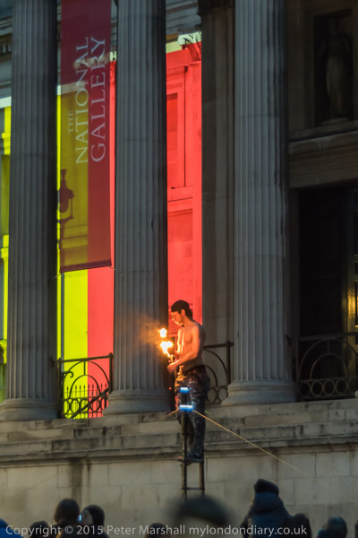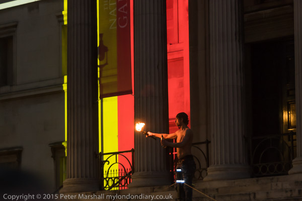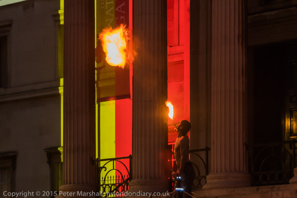 I took some pictures as he breathed fire, but when the flame was large it made the flag difficult to see