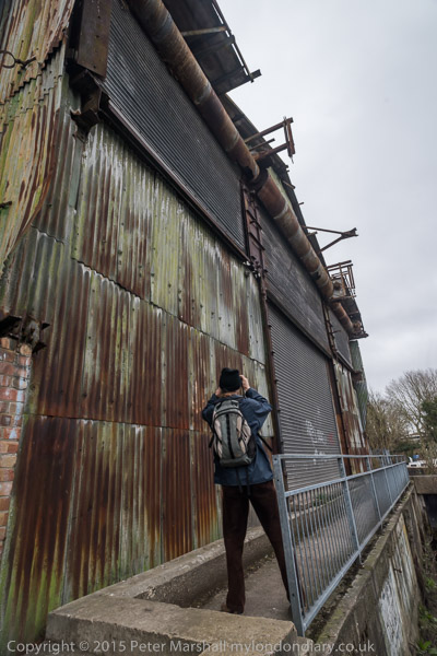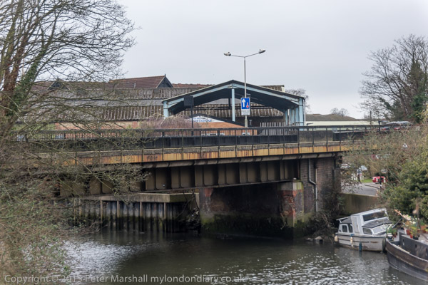 Former Great Western Railway line to Brentford Dock. Now the bridge carries Augustus Close, leading to the Dock estate
