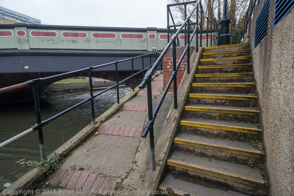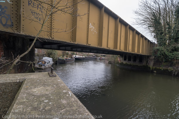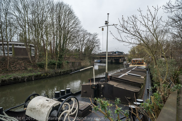 View along canal back to Augustus Close bridge