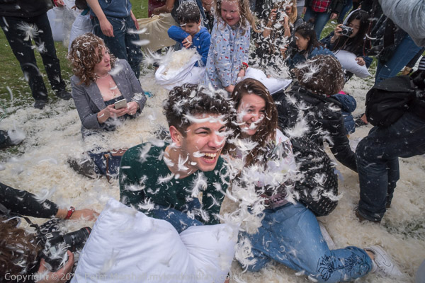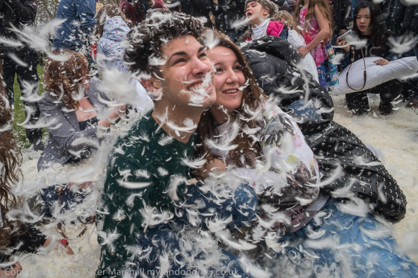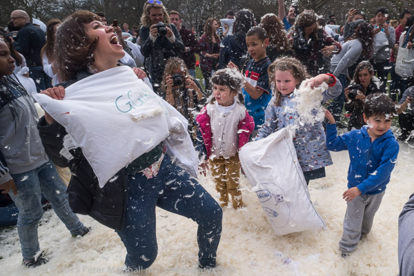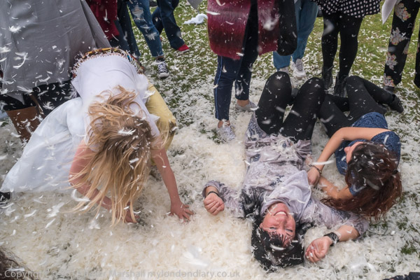 But there was one area where some women and children were playing where the feathers were getting really thick