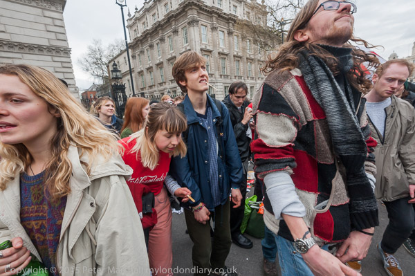 Most of the protesters had left Downing St by the time I called back around 4pm, but some were still blocking Whitehall in one direction and partying
