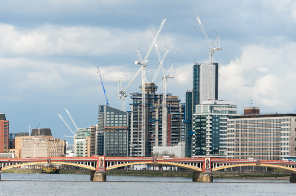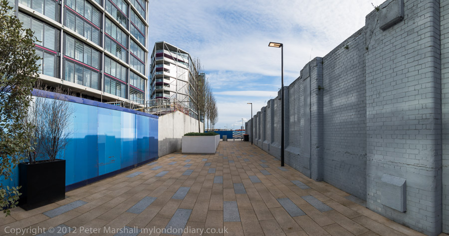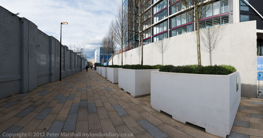 Finally St George Wharf Tower will fit in an image. In front is Riverside Court, the first of the riverside flat developments