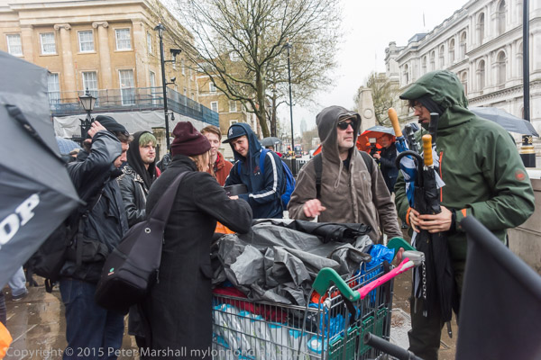 Streets Kitchen have brought umbrelllas as well as milk, tents and other supplies for the homeless