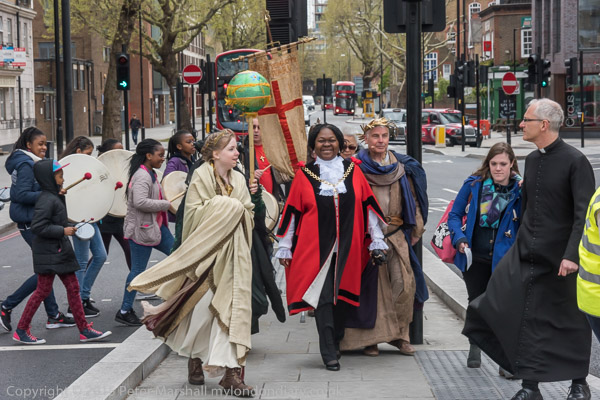 The Mayor of Southwark, Cllr Dora Dixon-Fyle MBE walks with the Emperor,