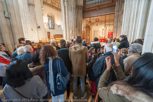 In front of the Martyr's chapel, the only part of the building to survive the Blitz
