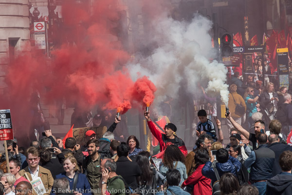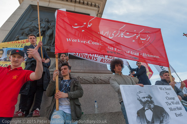 May Day and don't intend to move - and tell him so. Press say they are workers with a job to do and tell him to
