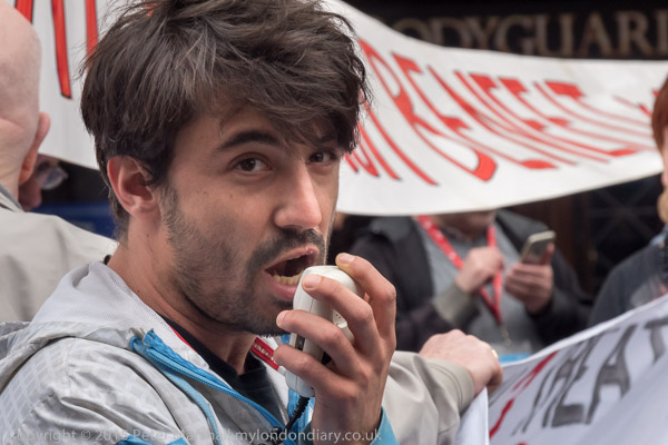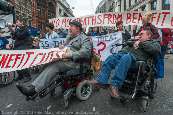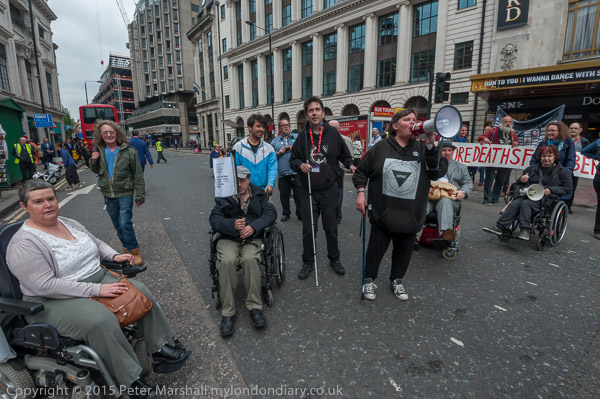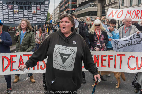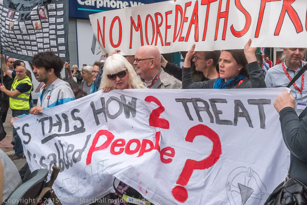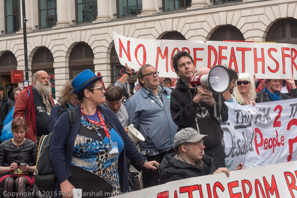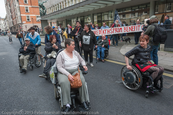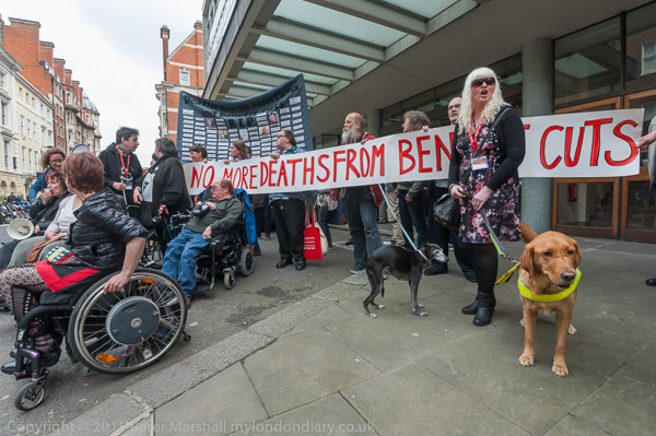 Delegates from the TUC disabled workers conference came out to protest during the lunch break, lining up