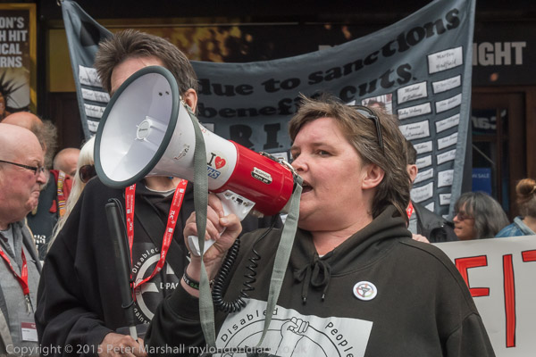 Paula Peters speaks with some anger; two more DPAC members have just died because of the Benefit cuts
