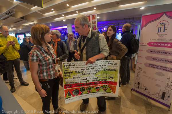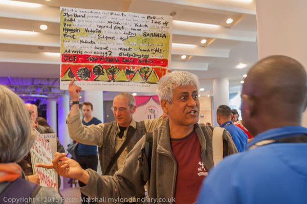 Foil Vedanta protesters were at the front of the presentation in the Clore Ballroom when I arrived