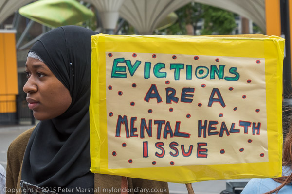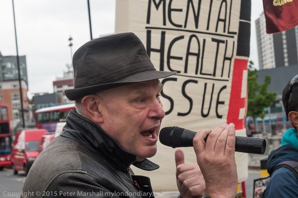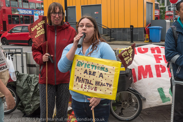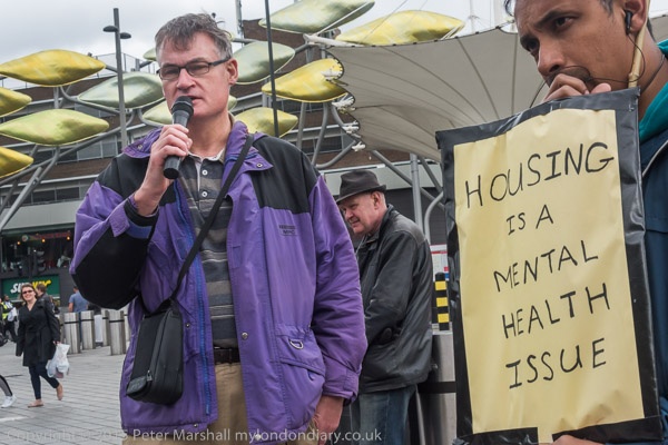 A trade unionist from Harlow speaks in support of the protest; 'Housing is a Mental Health Issue'