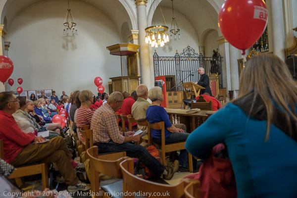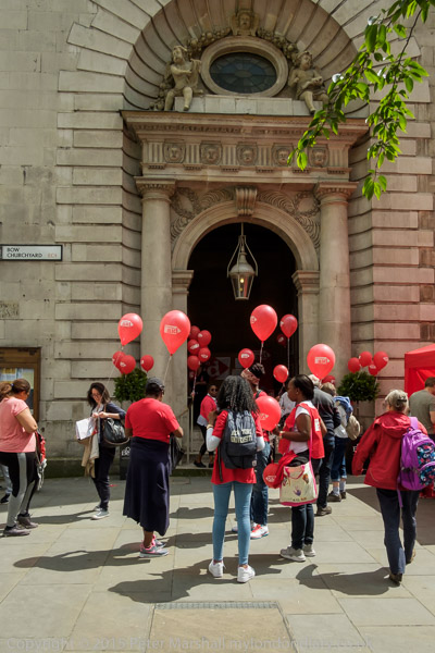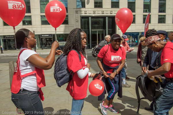 People meet at St Mary-le-Bow in Cheapside for the Christian Aid 'Walk the City'