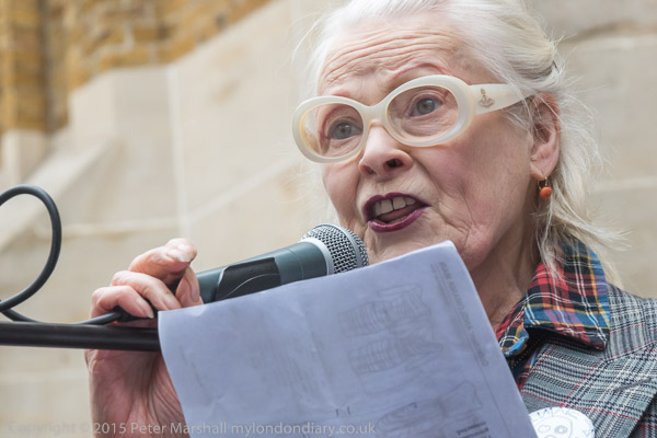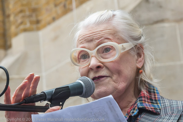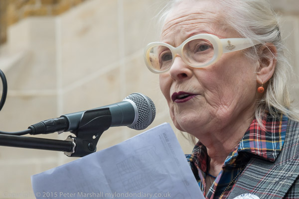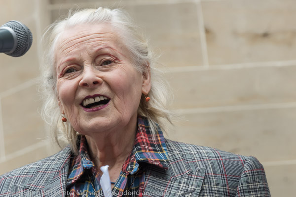 Dame Vivienne Westwood comes up to speak