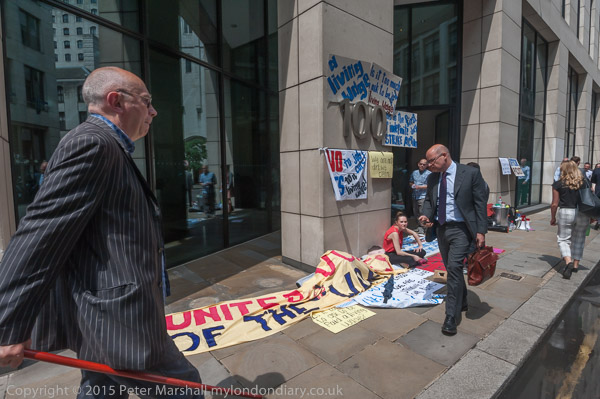 People were still able to go in and out of 100 Wood St as normal despite the presence of the picket. An e-mail