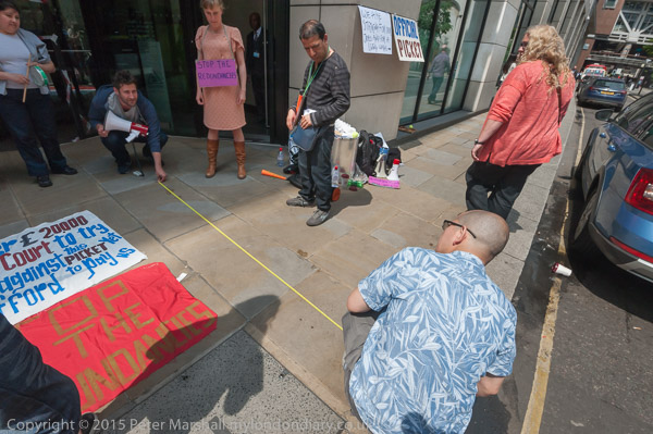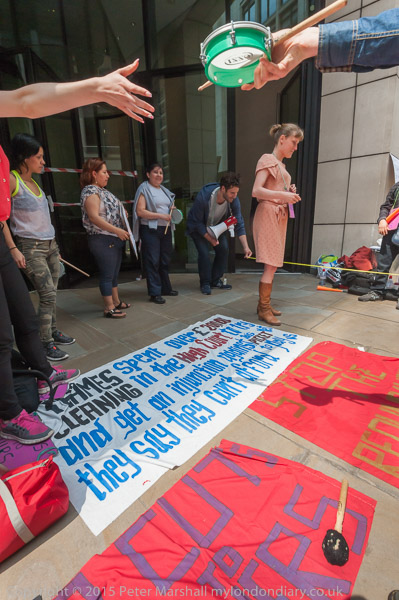but the picket and protest were peaceful and lawful, making the case for the cleaners. A banner on the pavement