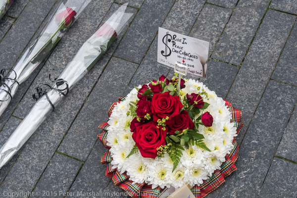 There were other flowers, and a wreath with a dedication for Dan Stephenson