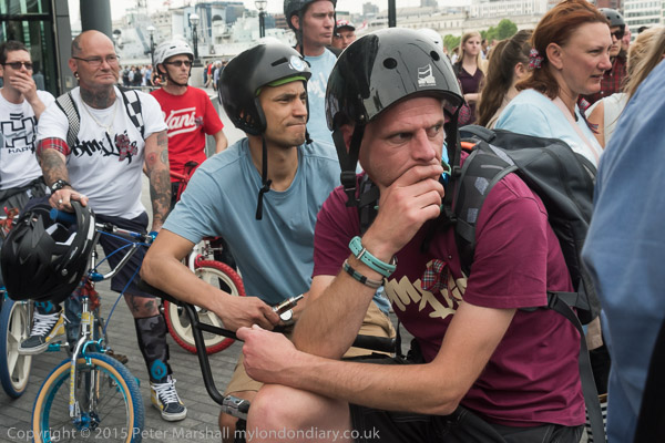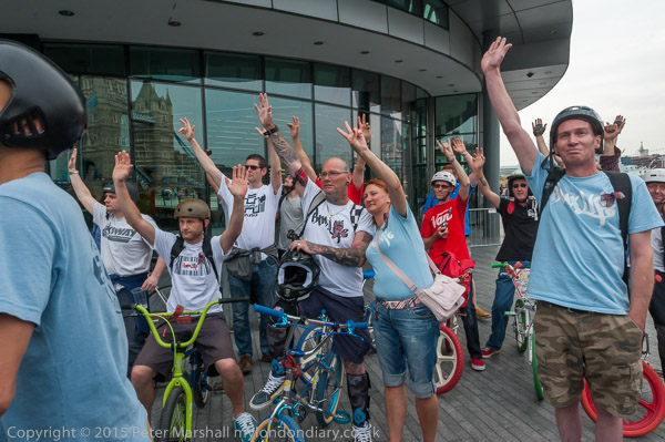 BMX Life riders gather close to City Hall. BMX rider Dan “Cash” Stephenson was taking part in one of their