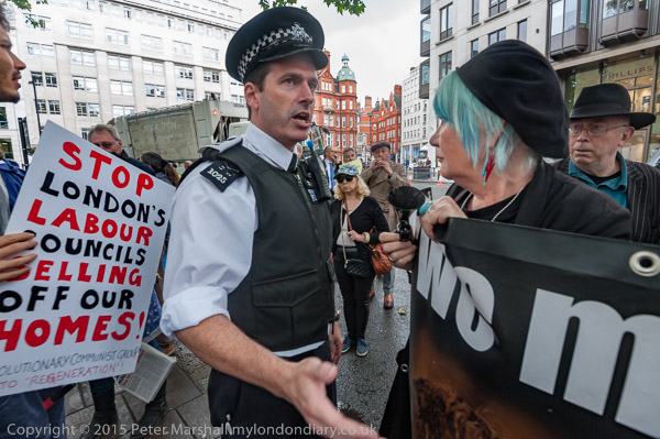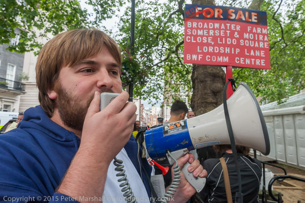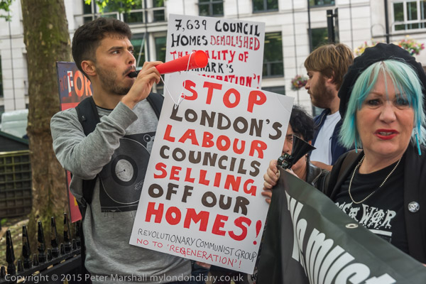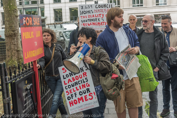 Sid Skill points out someone from Southwark Council leaving the event - Southwark have demolished 7,639 council homes