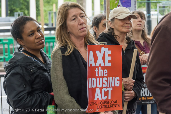 Some try to stop the shouting, saying we all have to work together against the Housing Act, but Southwark is