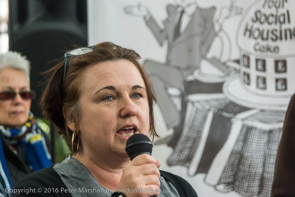 Tanya Murat of Southwark Defend Council Housing introduces the speakers before the march