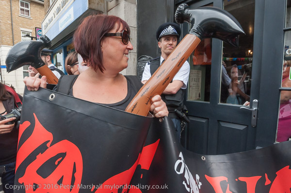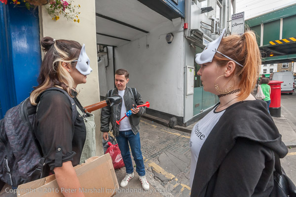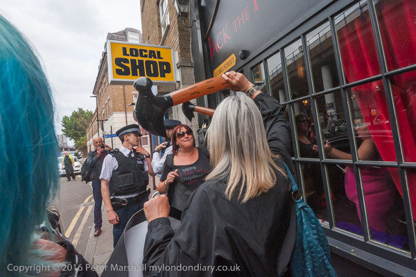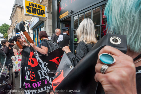 Ian Bone tried to go into the shop, but is stopped by police. The 'Local Shop' sign is for the shop next door the the 'Ripper'