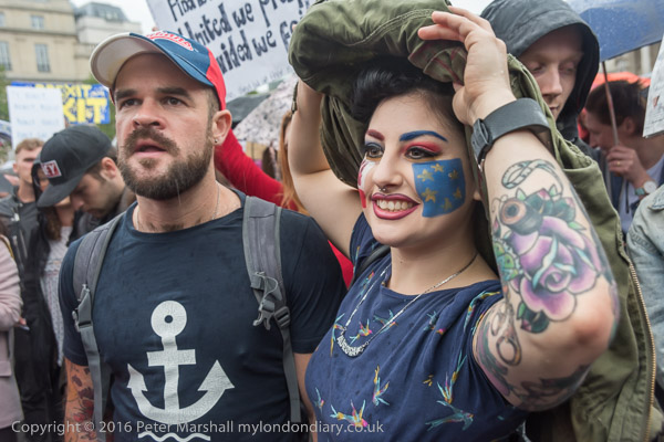 People gather in the rain for a protest after the Brexit vote. Everyone feels cheated as politicians deny the promises