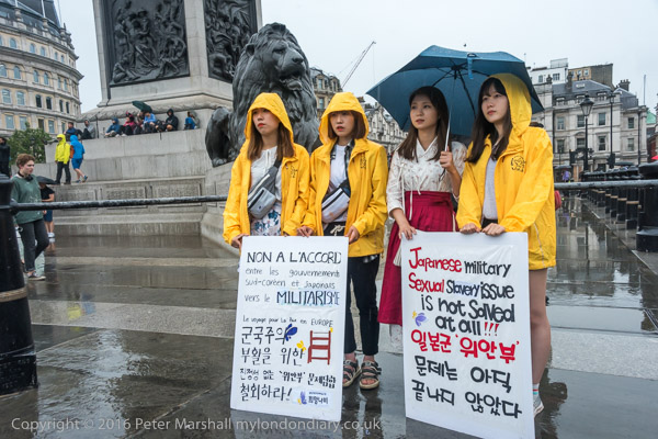 Young Korean women were also protesting in the square against a miltary agreement between Japan and South Korea