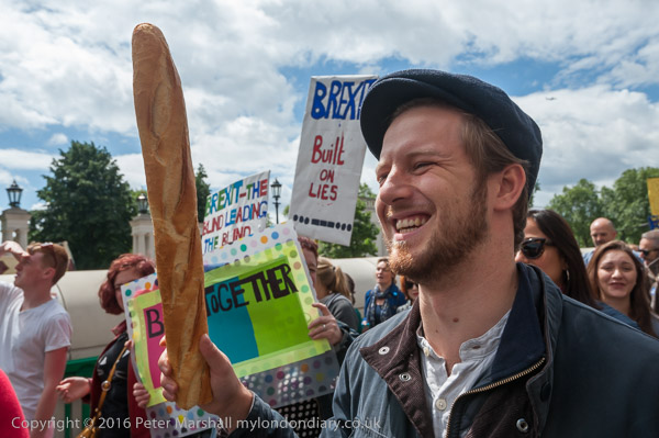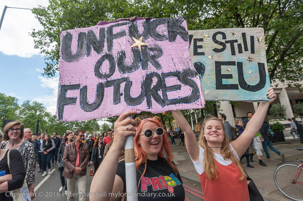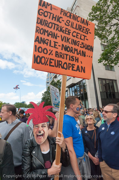 Many had placards or clothing reflecting the European flag