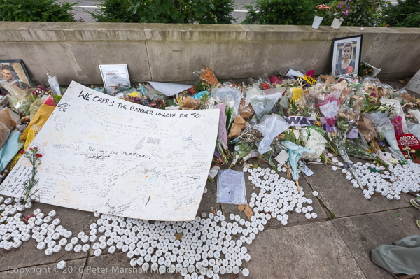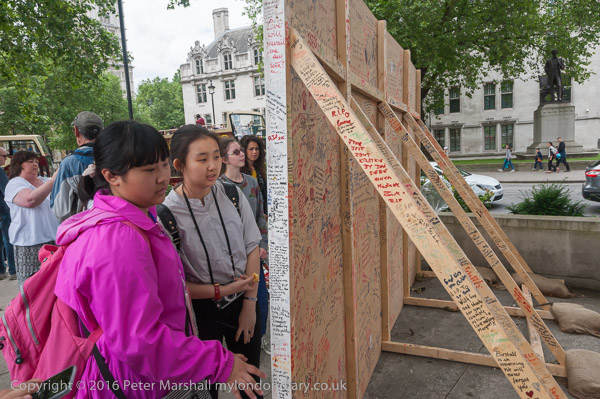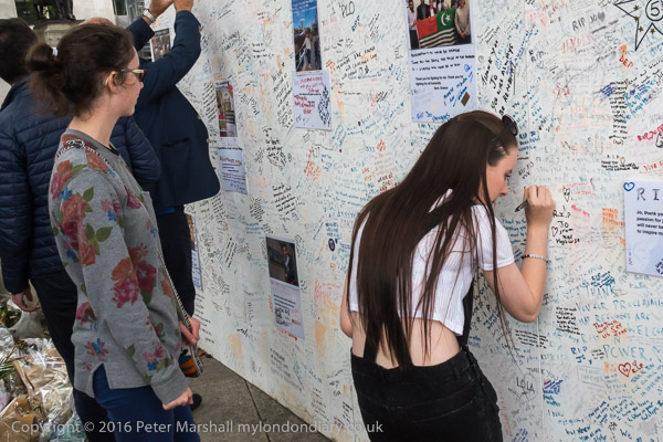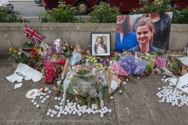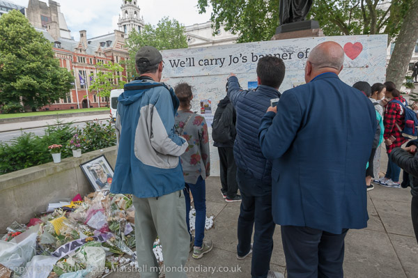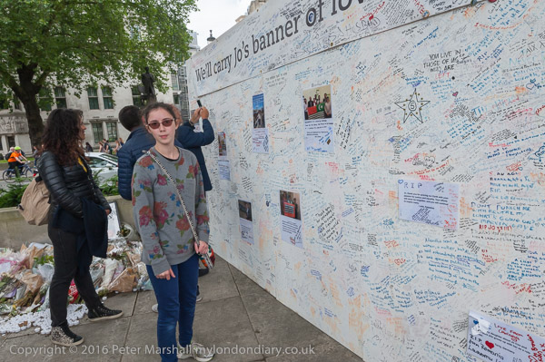 The tribute to murdered Labour MP Jo Cox was still attracting attention in Parliament Square