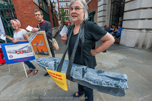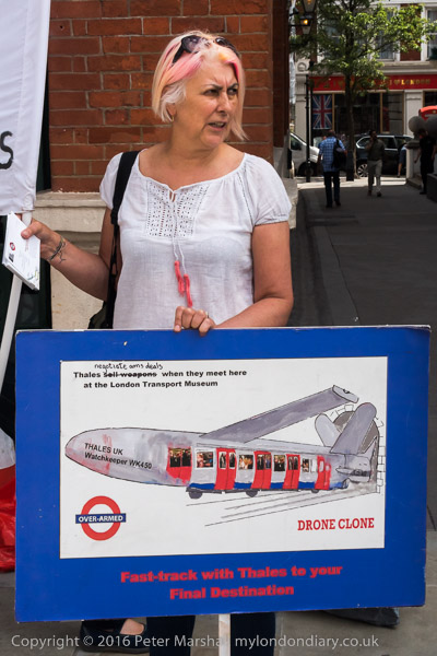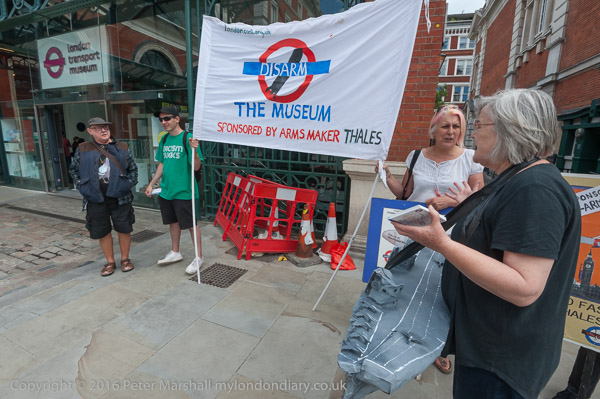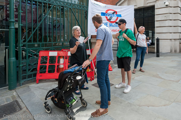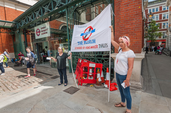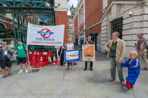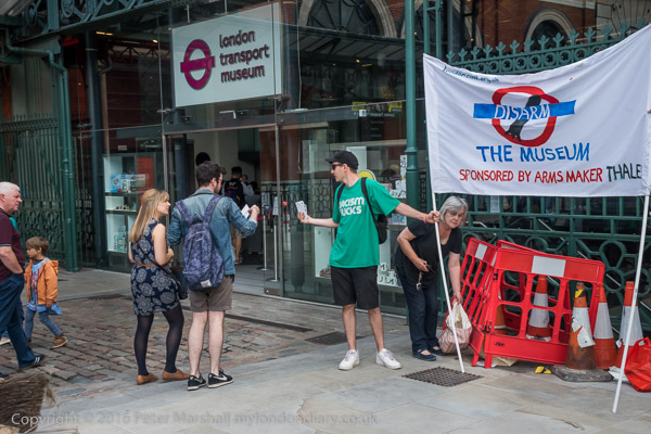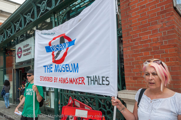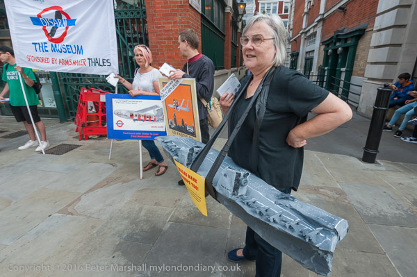 Campaign Against Arms Trade, London protesters call on the LT Museum to end sponsorship by arms maker Thales