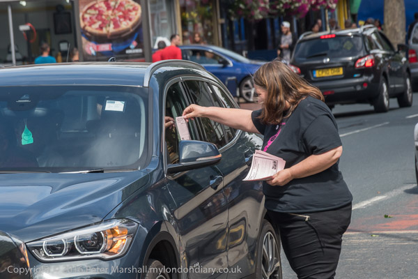 Newham Mayor Robin Wales. The gave out flyers to motorists stopped at the lights as well as people walking by