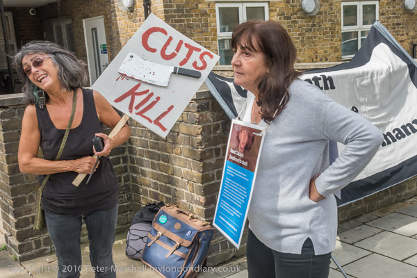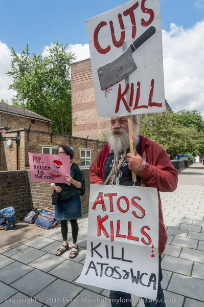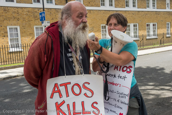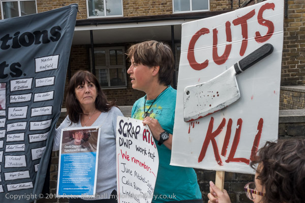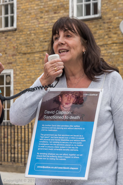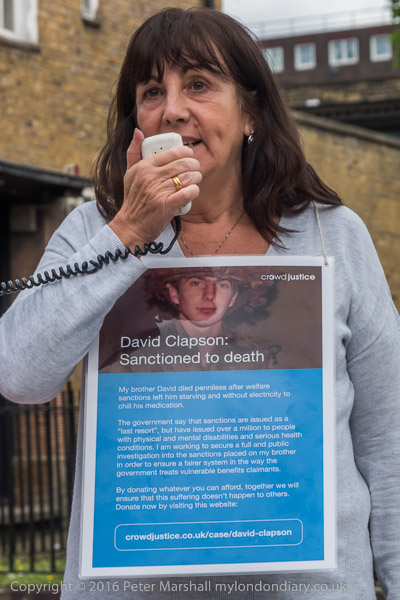 Gill Thompson (r), whose brother David Clapson died in July 2013 from starvation and a lack of insulin due to his benefit being sanctioned
