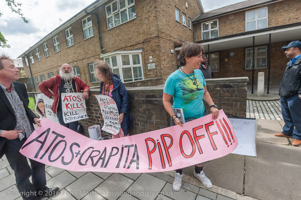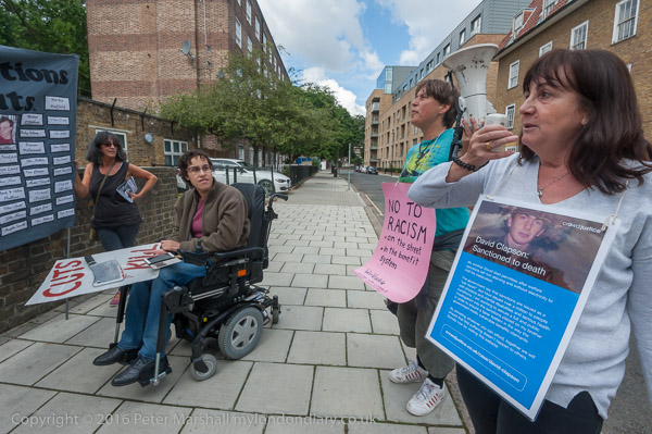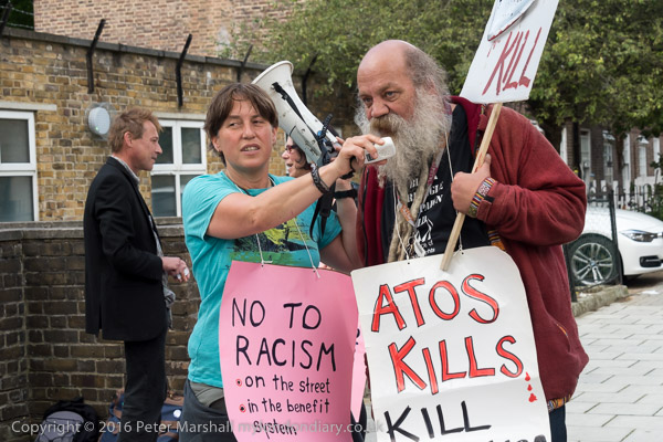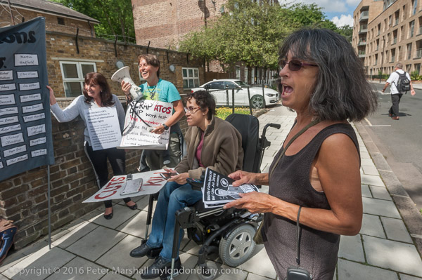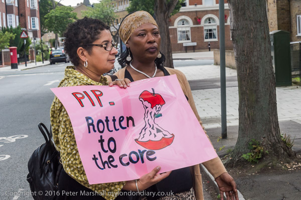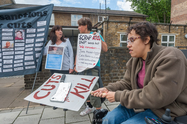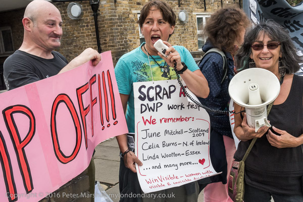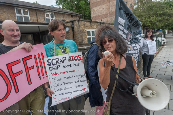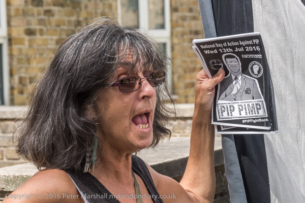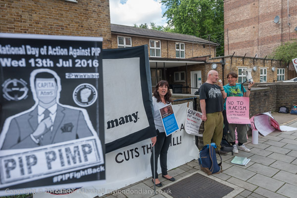 Didi Rossi speaks outside the Vauxhall PIP consultation Centre