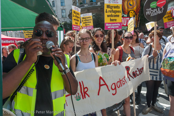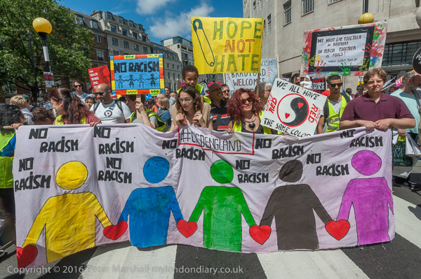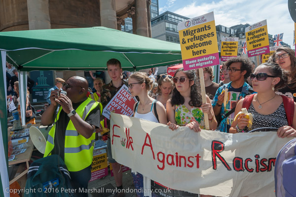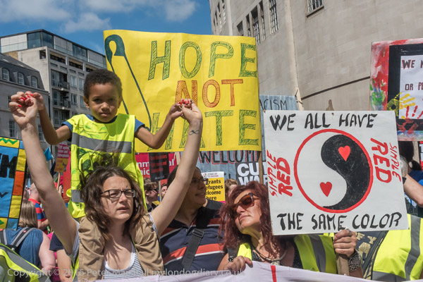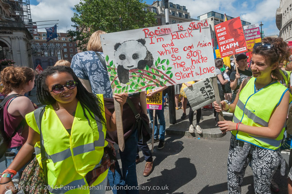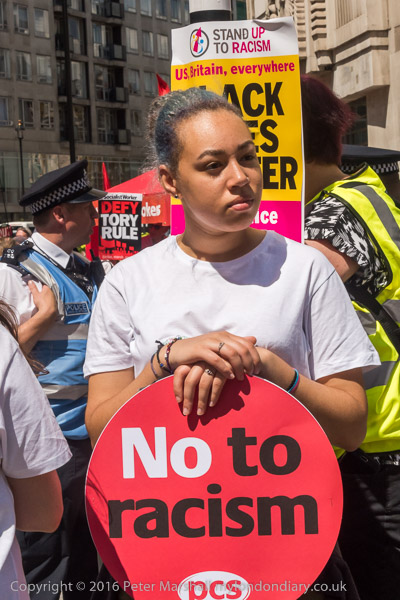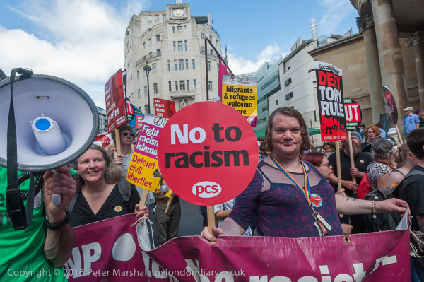 Woodcraft Folk at the protest with a banner 'Folk Against Racism'