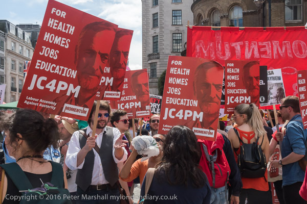 Momentum/Labour Assembly Against Austerity supporters 'For Health Homes Jobs Education JC4PM