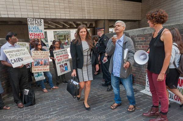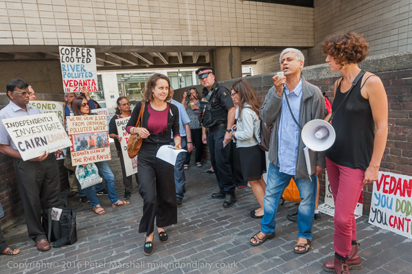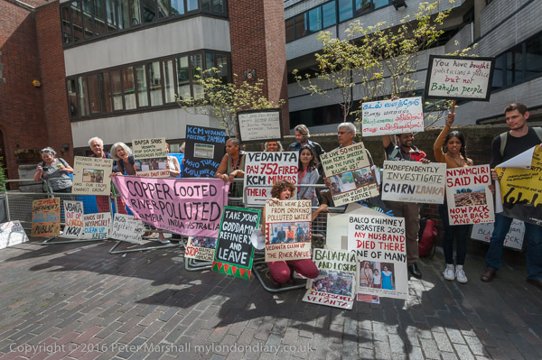 The protesters set up in the yard leading to the Ironmonger's Hall with posters about Vedanta's crimes around